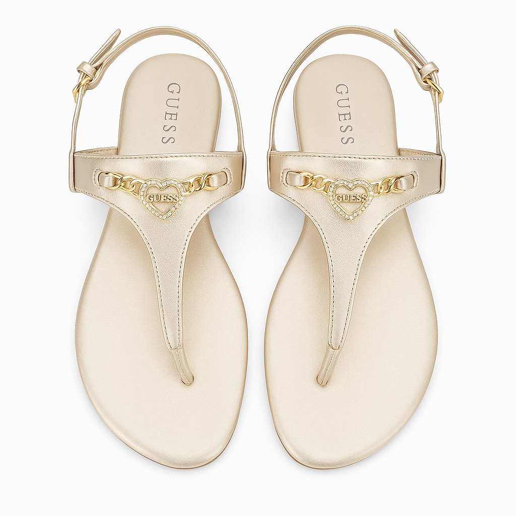Estas sandalias Guess en tono dorado combinan estilo y sofisticación para realzar cualquier outfit. Diseñadas con materiales de alta calidad, ofrecen comodidad y durabilidad, ideales para uso diario o eventos especiales. Su acabado brillante aporta un toque elegante y moderno, perfecto para quienes buscan un calzado versátil y llamativo.