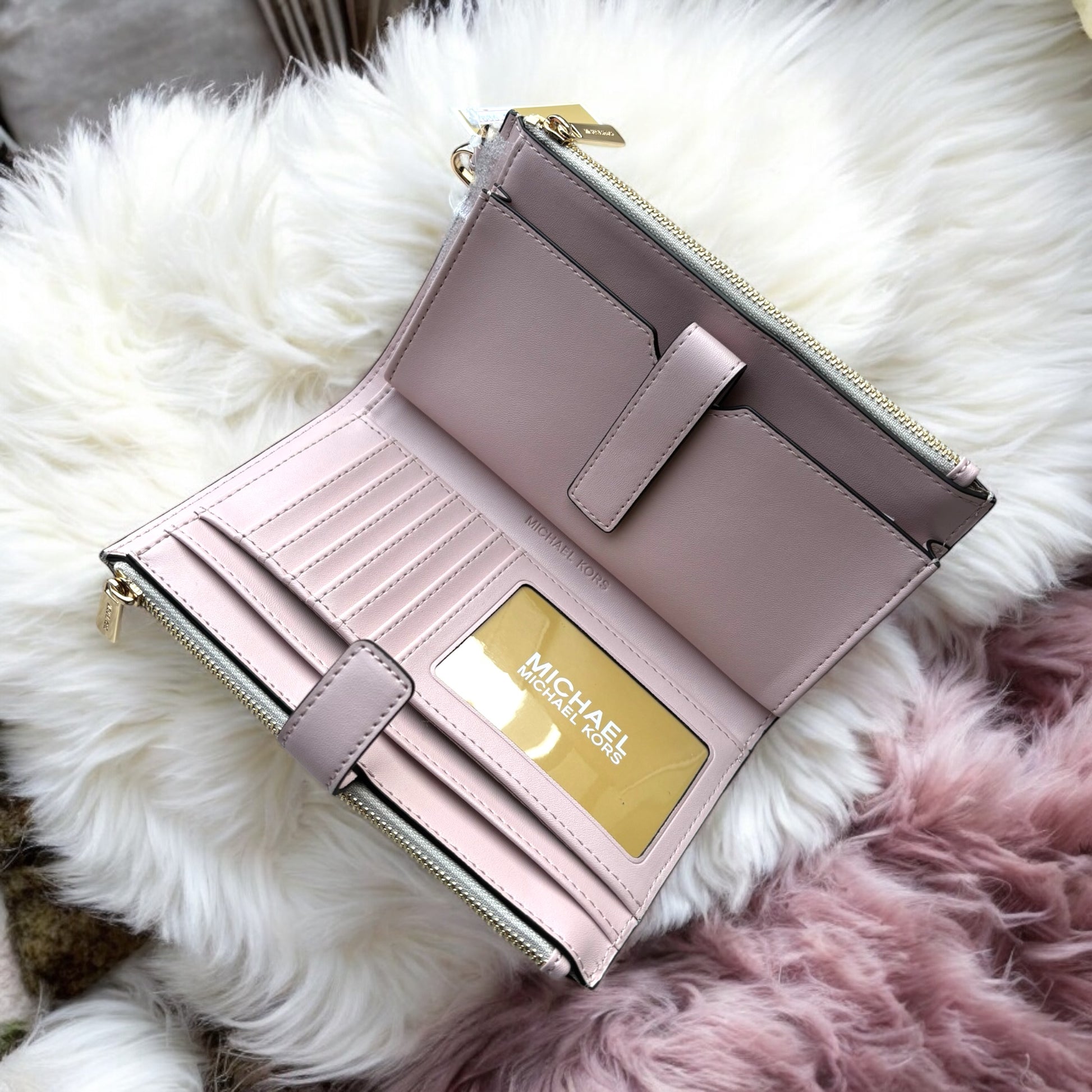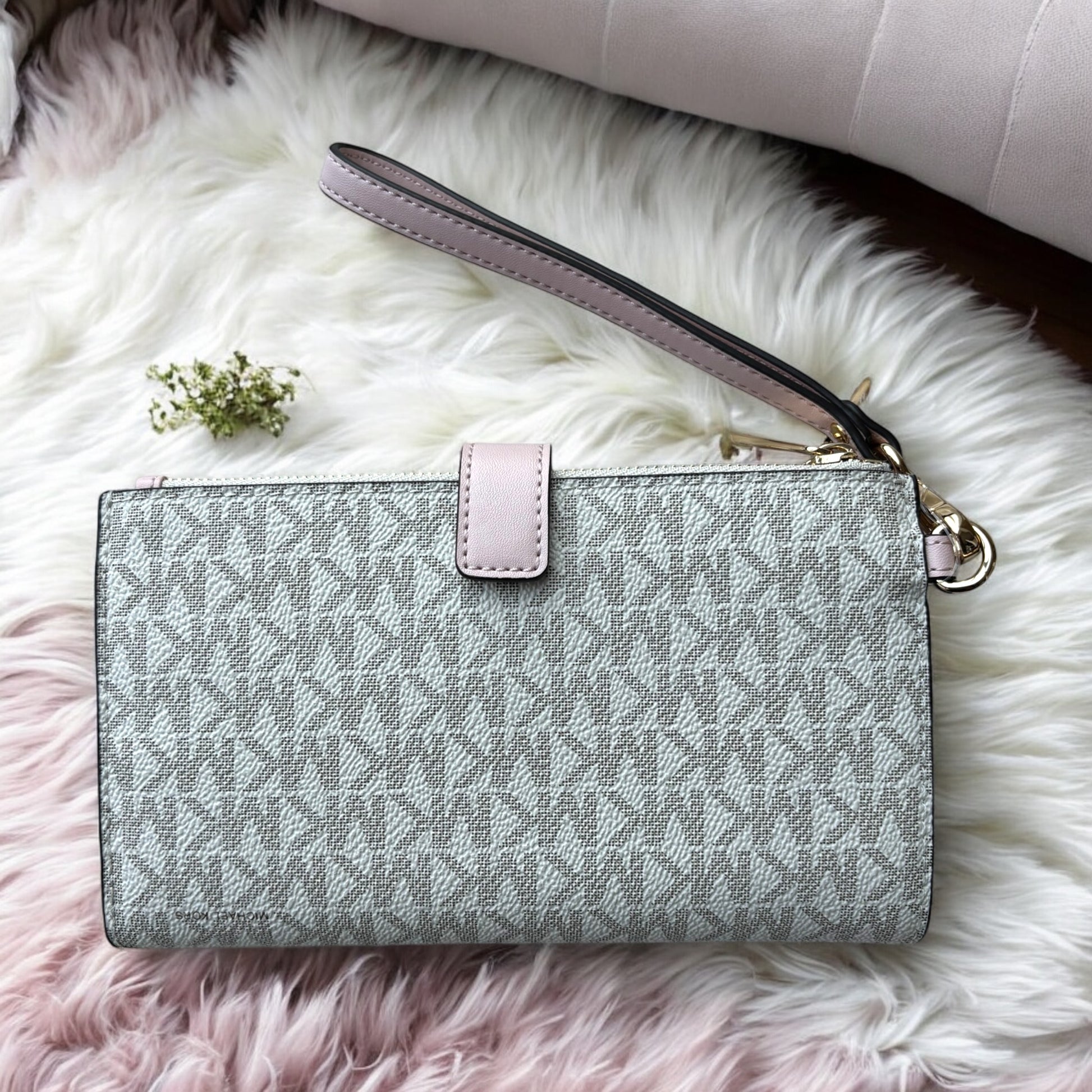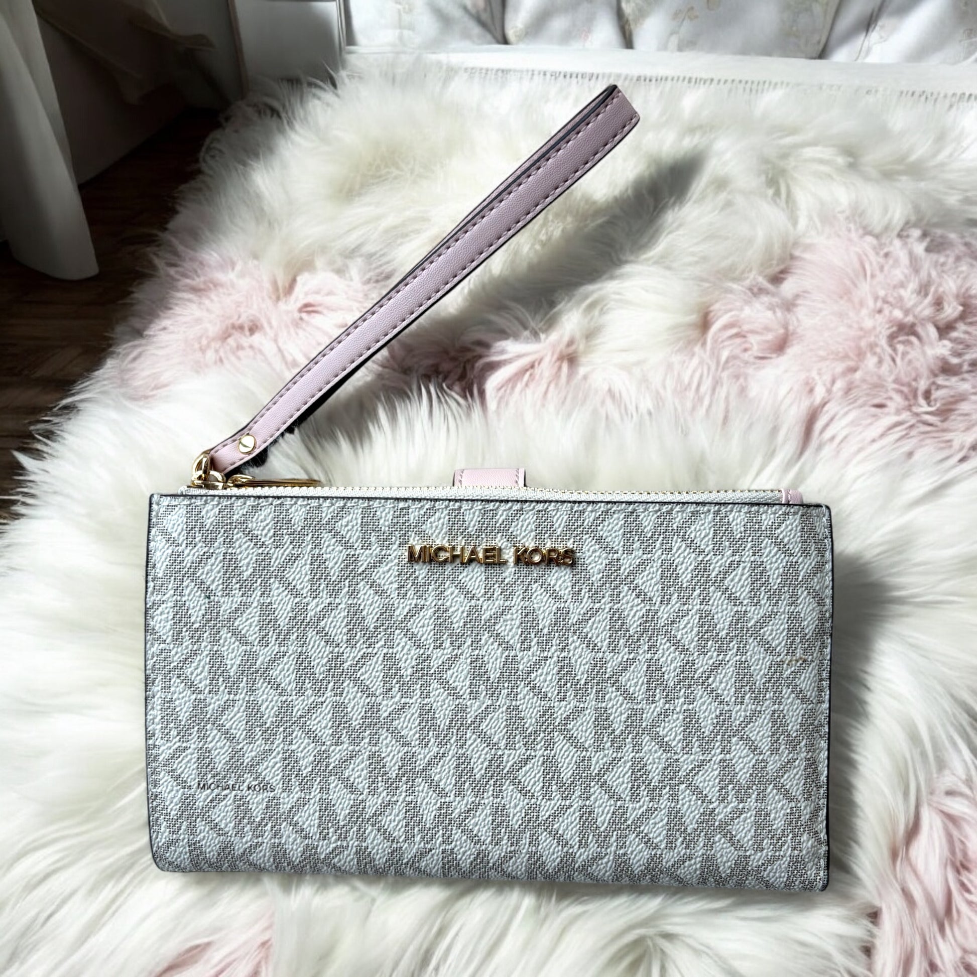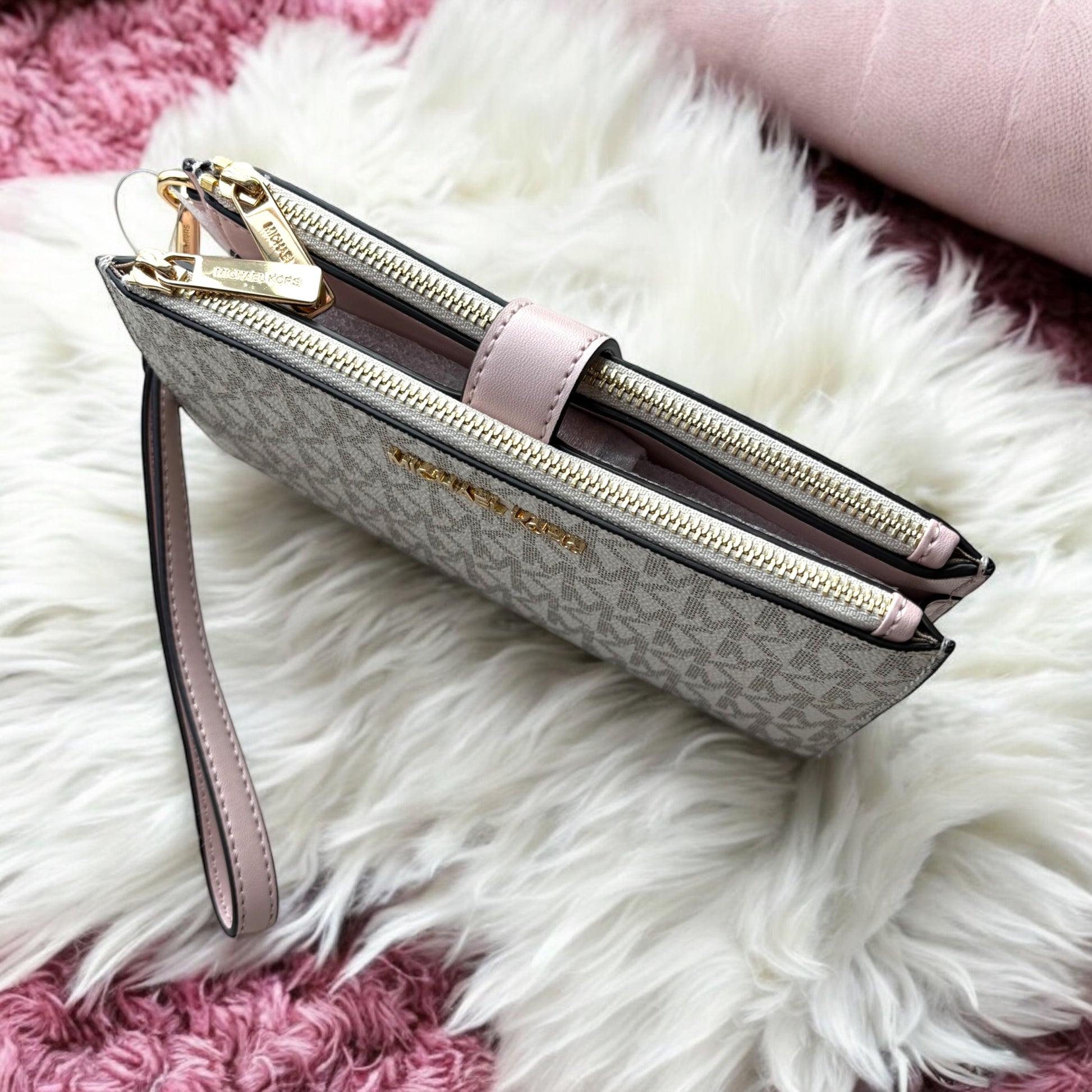 Cartera Michael k vanilla/rosa doble cierre