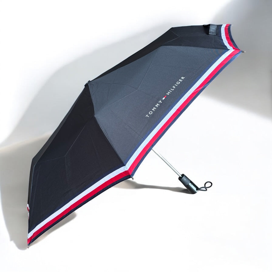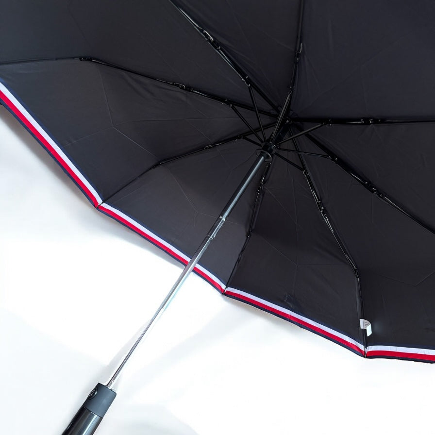 Sombrilla Tommy H negra, orilla blanco/rojo, botón abrir cerrar