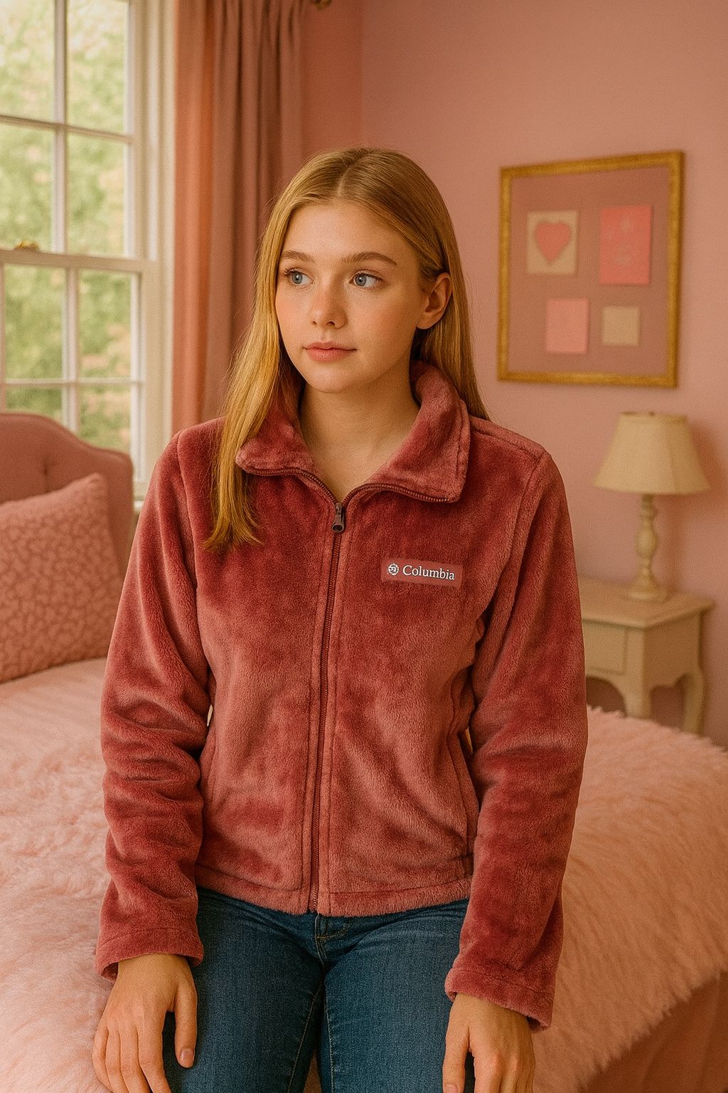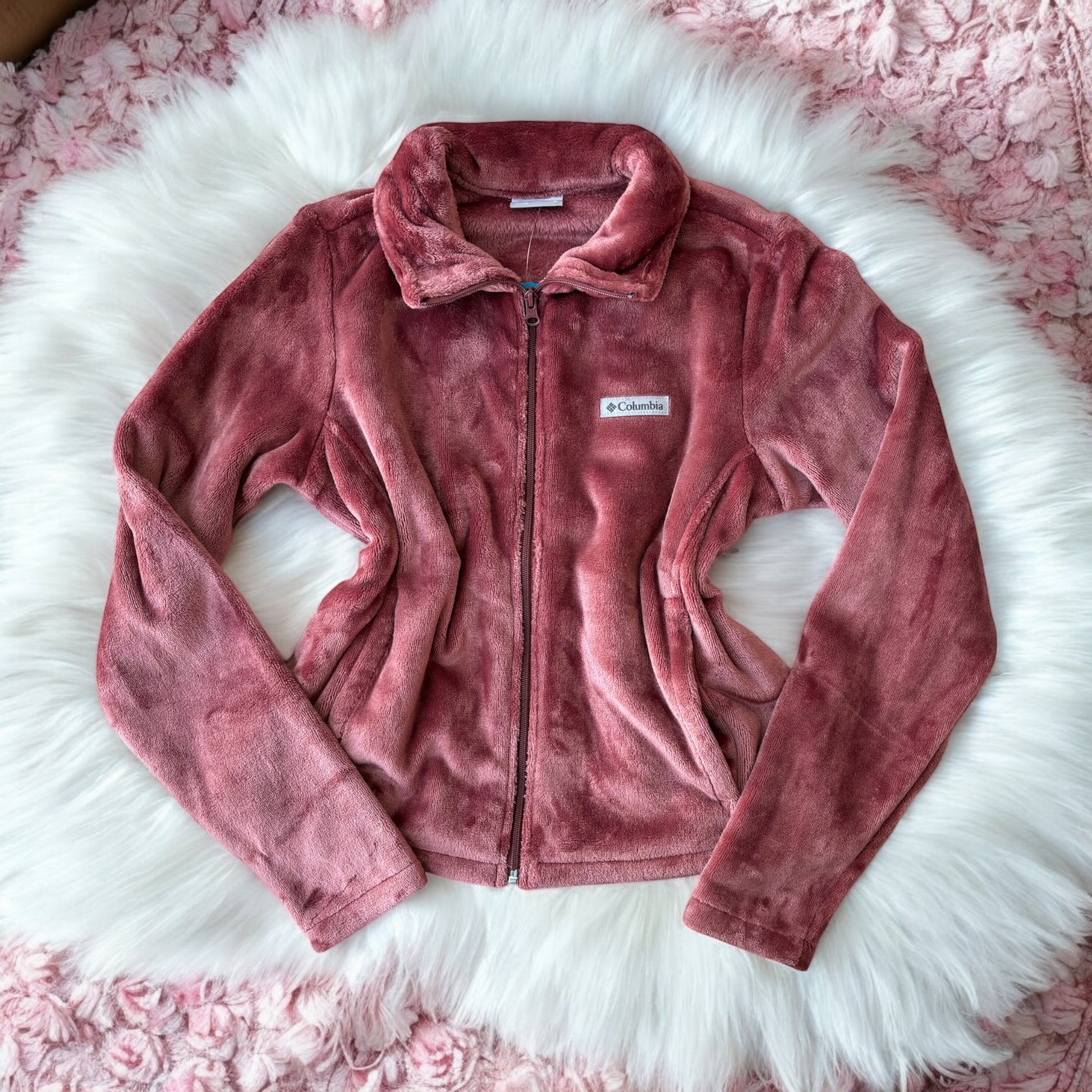 Sudadera de n un tono rosa súper calientita que complementará tu look sin perder el estilo de la marca Columbia de tela similiar al terciopelo