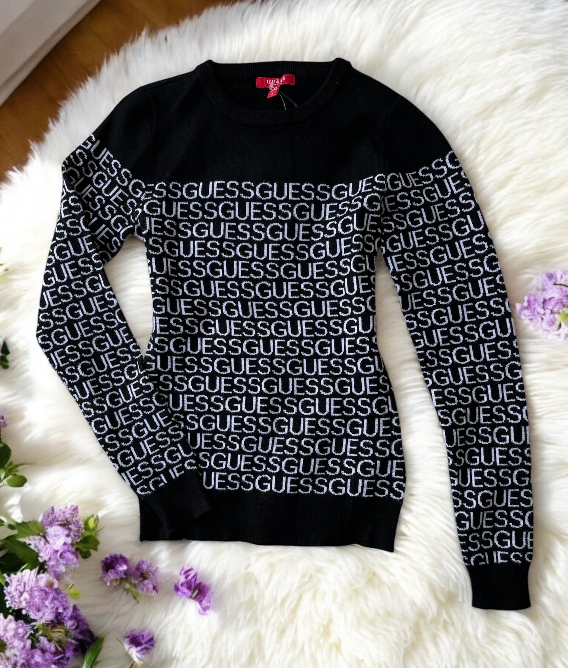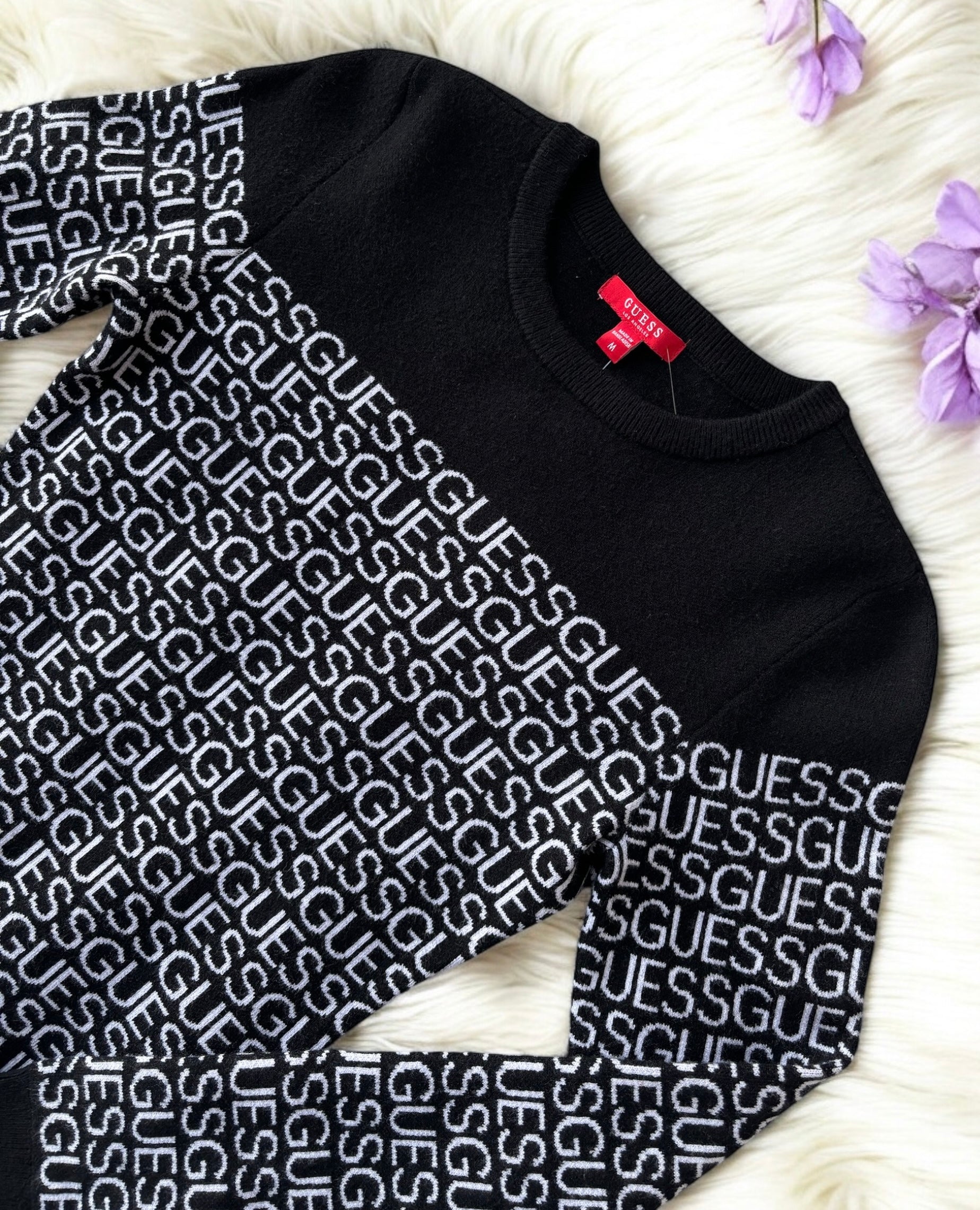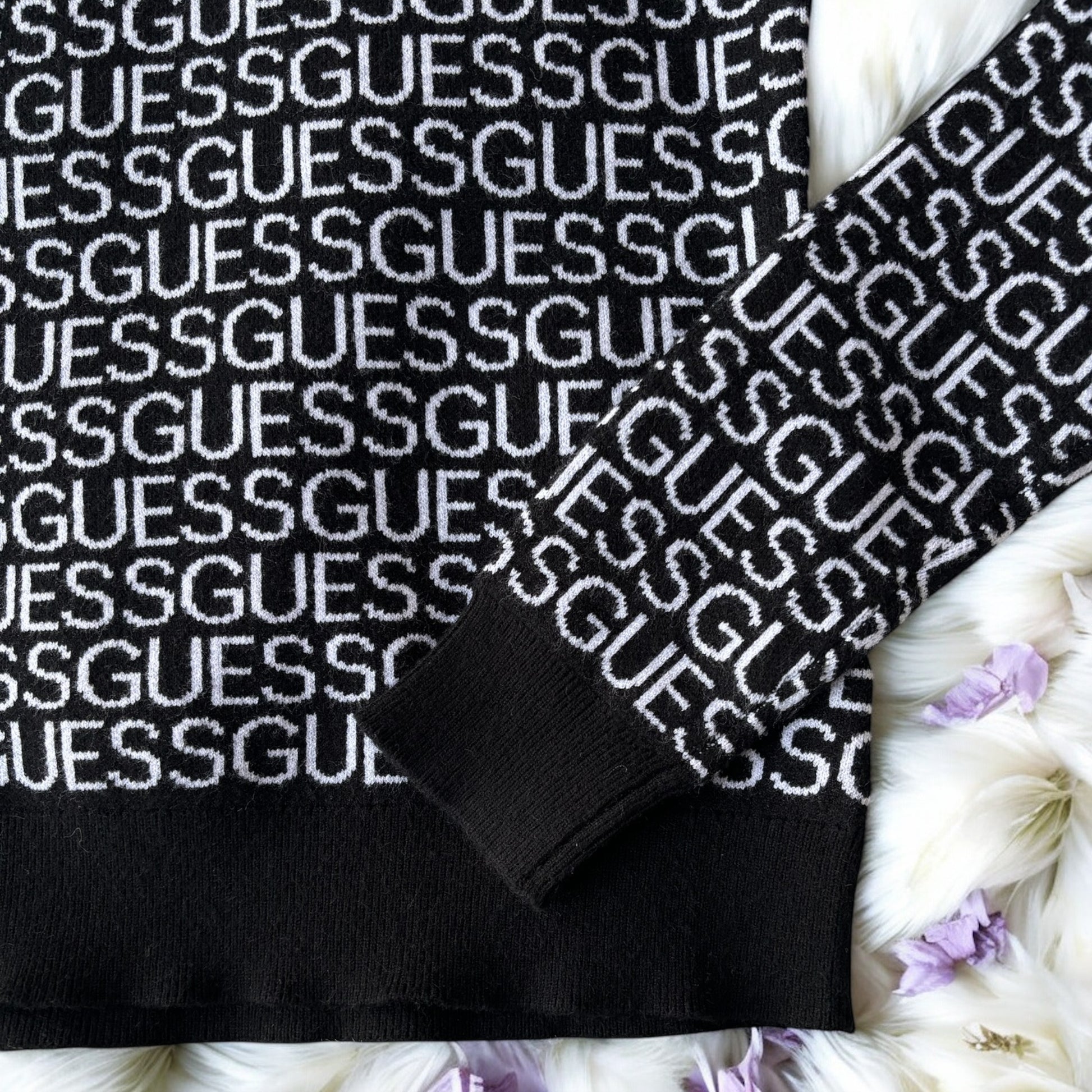 Suéter Guess negro con monogram blanco