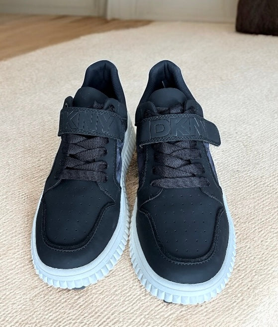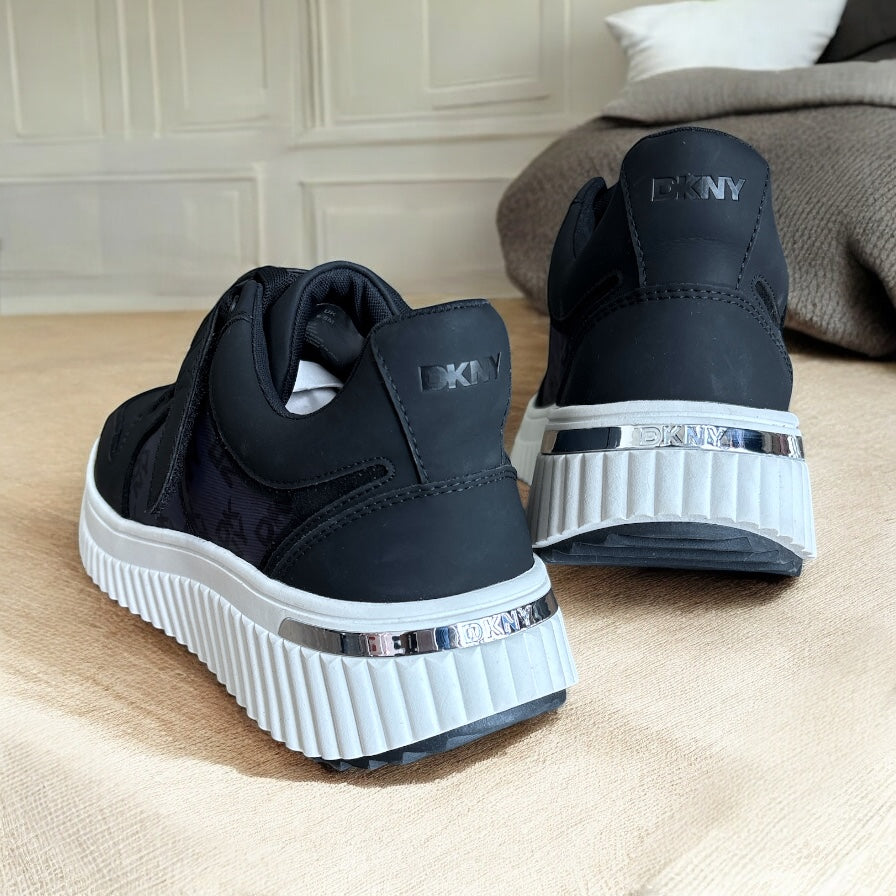 Estos tenis DKNY exclusivos en negro y azul marino cuentan con una suela blanca para un look moderno y elegante. Diseñados con materiales de alta calidad, son únicos en su estilo y ofrecen comodidad y estilo a partes iguales. Ideal para cualquier ocasión.
