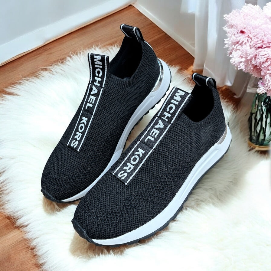 Estos tenis de tela negros de Michael Kors son perfectos para cualquier ocasión. Con su diseño elegante y líneas blancas, destacarás en cualquier lugar. Además, su comodidad y calidad asegurada te permitirán caminar con confianza y estilo. ¡Hazte con ellos ahora y no te arrepentirás!