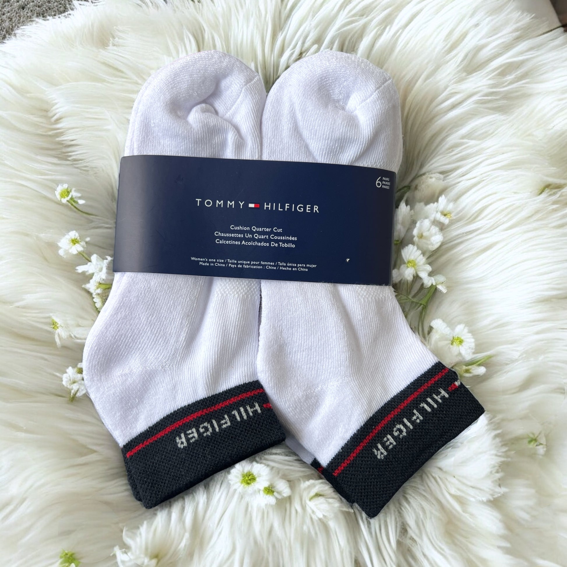 Tines Tommy H blancos con línea azul y letras blancas