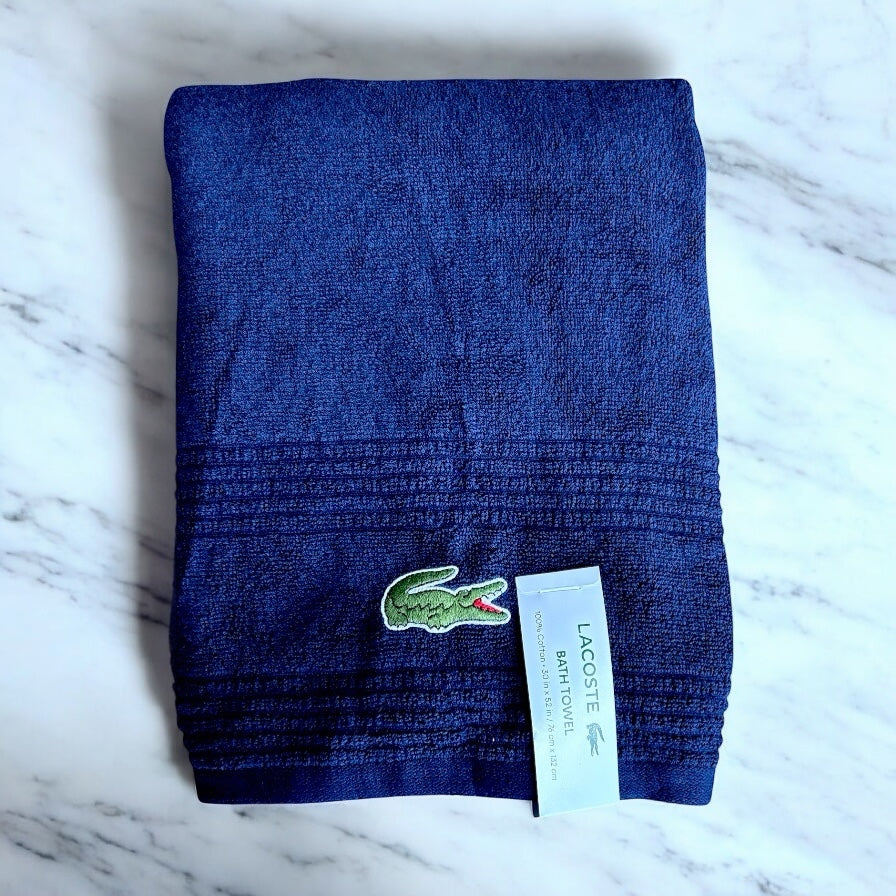 -Esta Toalla Lacoste de color azul marino es el toque elegante que necesitas para tu día en la playa o la piscina.