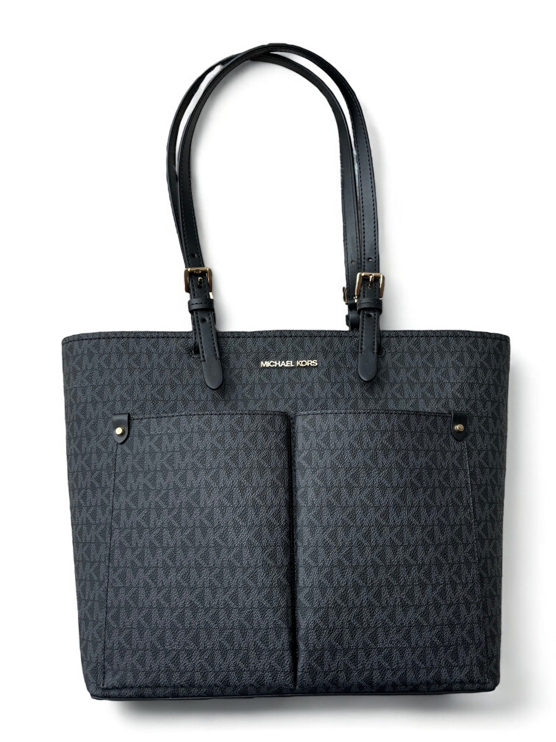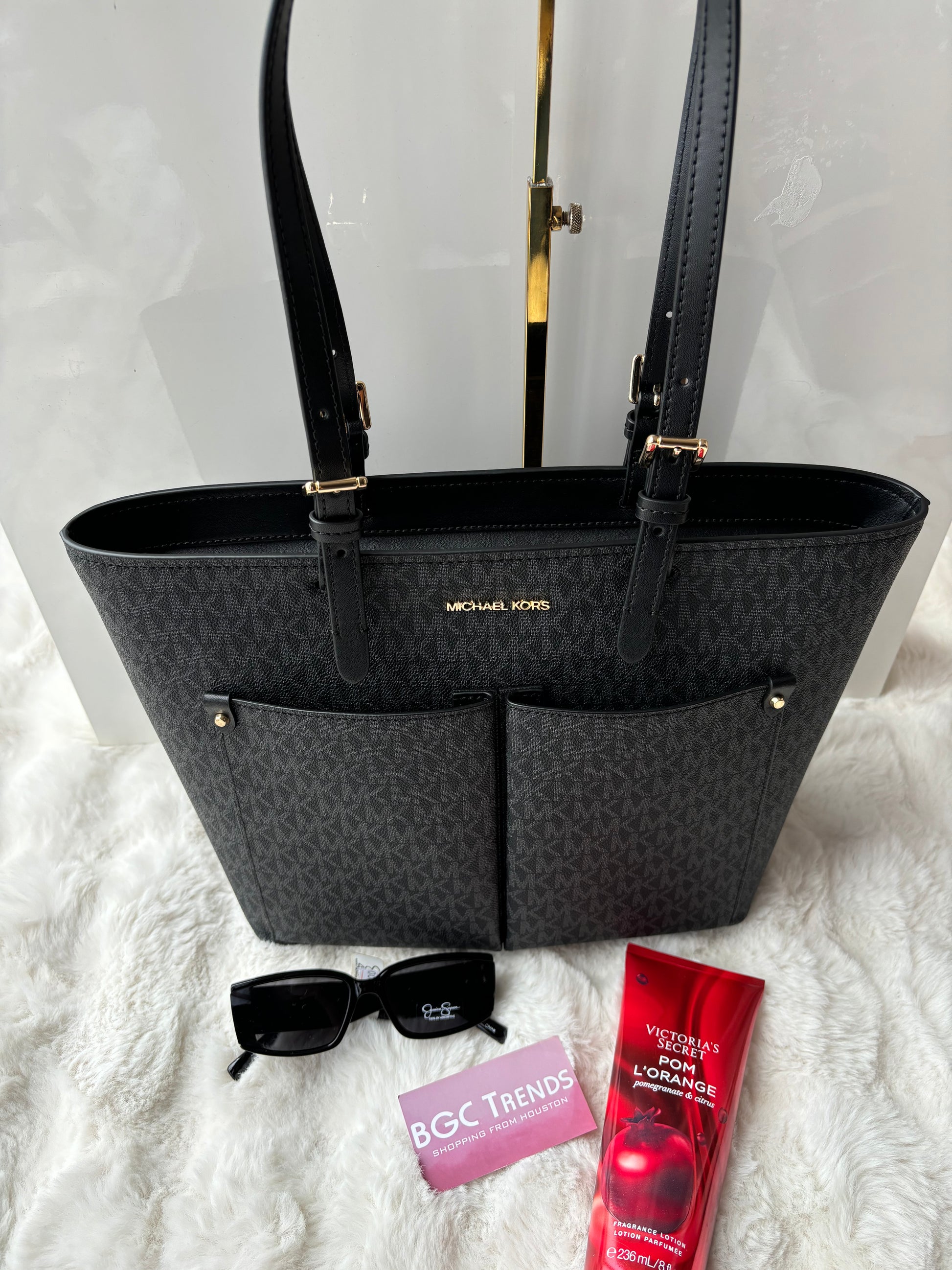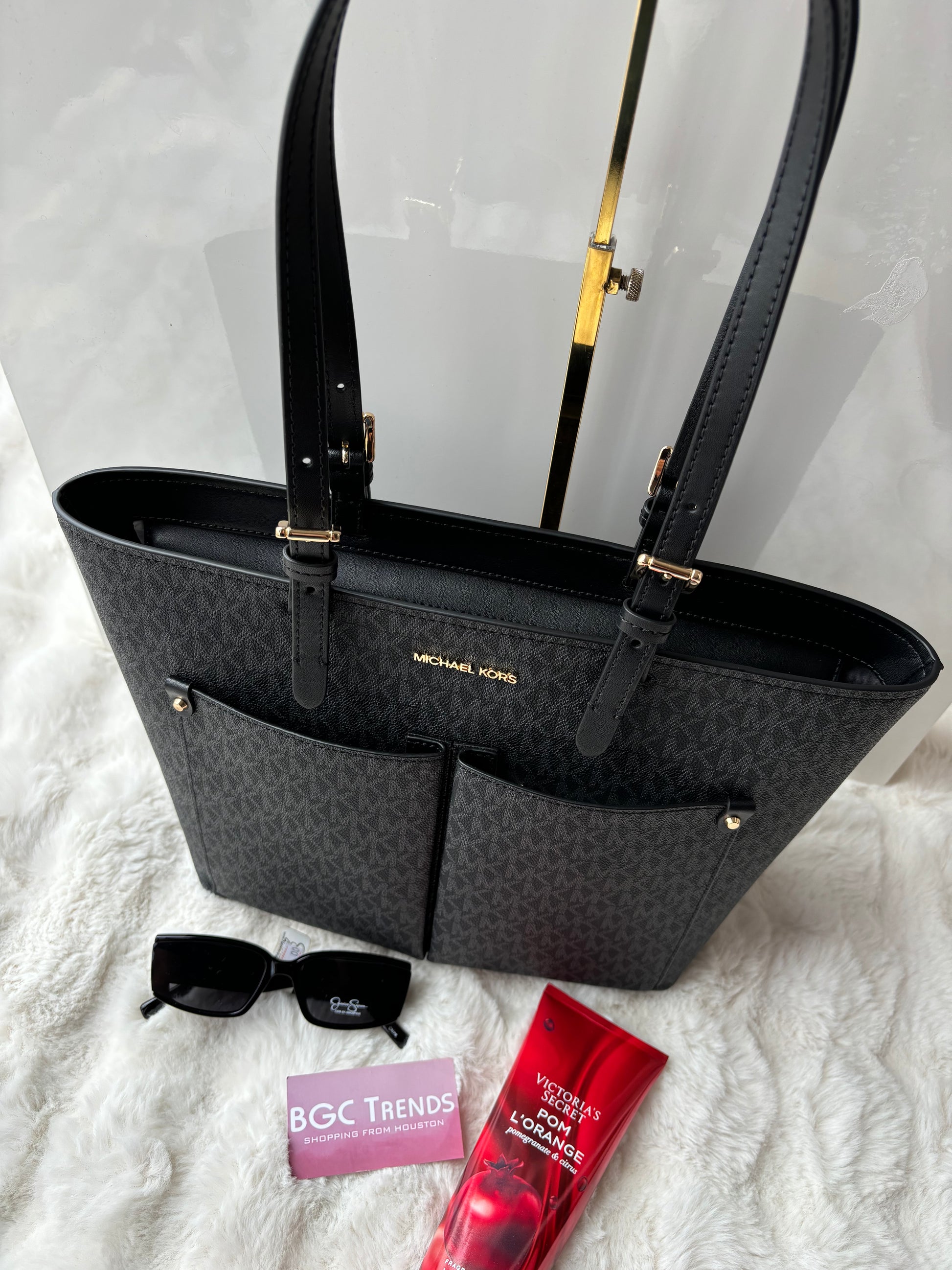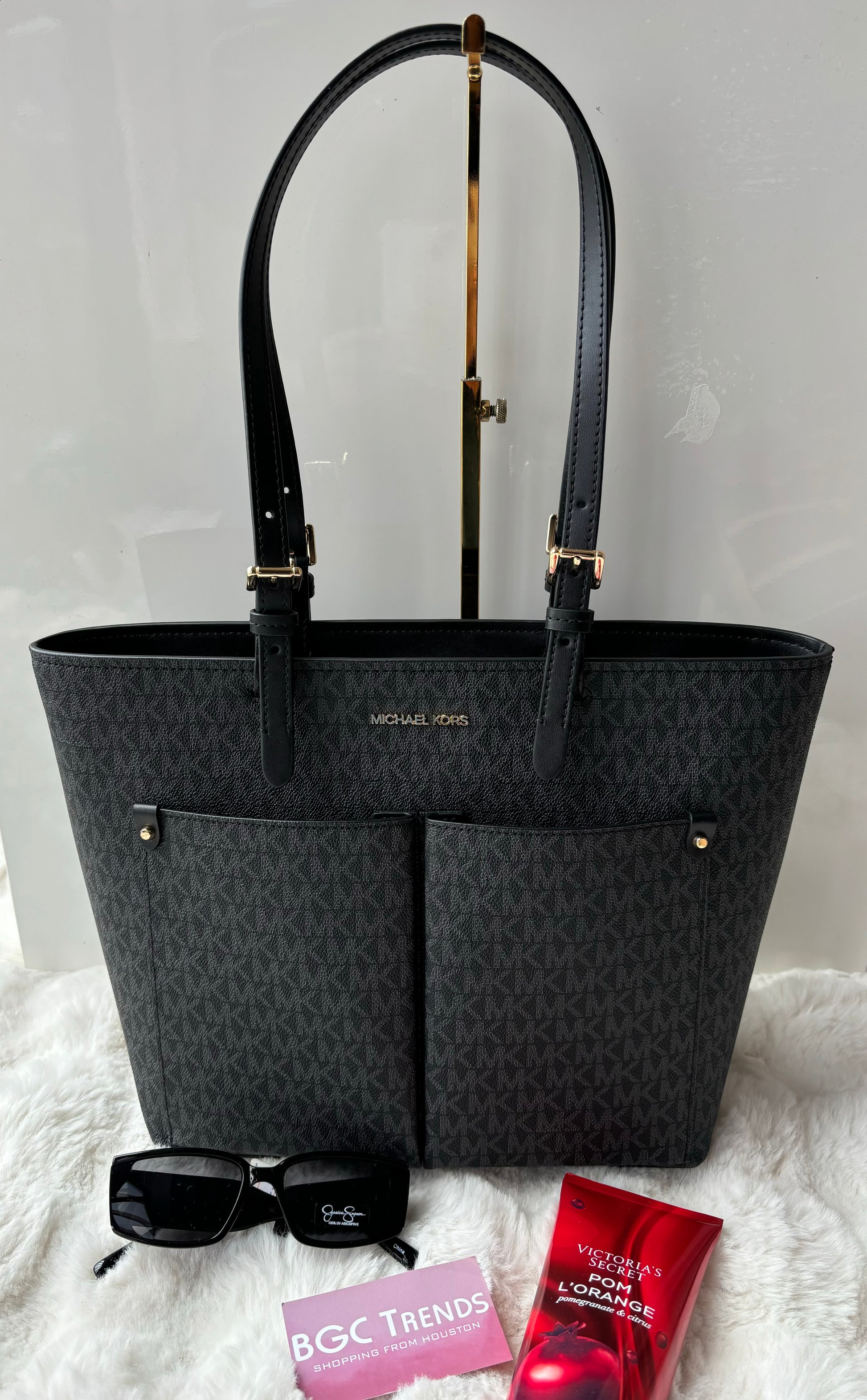 Esta hermosa Tote Michael k negra con monogram y bolsas en frente es perfecta para llevar tus objetos personales con estilo. Con su diseño elegante y funcional, podrás llevar todo lo que necesitas de manera organizada y con un toque sofisticado. Ideal para cualquier ocasión, ¡sorprenderás con su versatilidad y calidad!