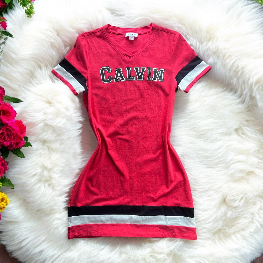 Este vestido Calvin de color rosa con letras negro y blanco es una prenda bonita y hermosa. Hecho con materiales de alta calidad, este vestido te brindará comodidad y estilo a la vez que realza tu figura. Ideal para cualquier ocasión, te hará destacar con su diseño moderno y juvenil.