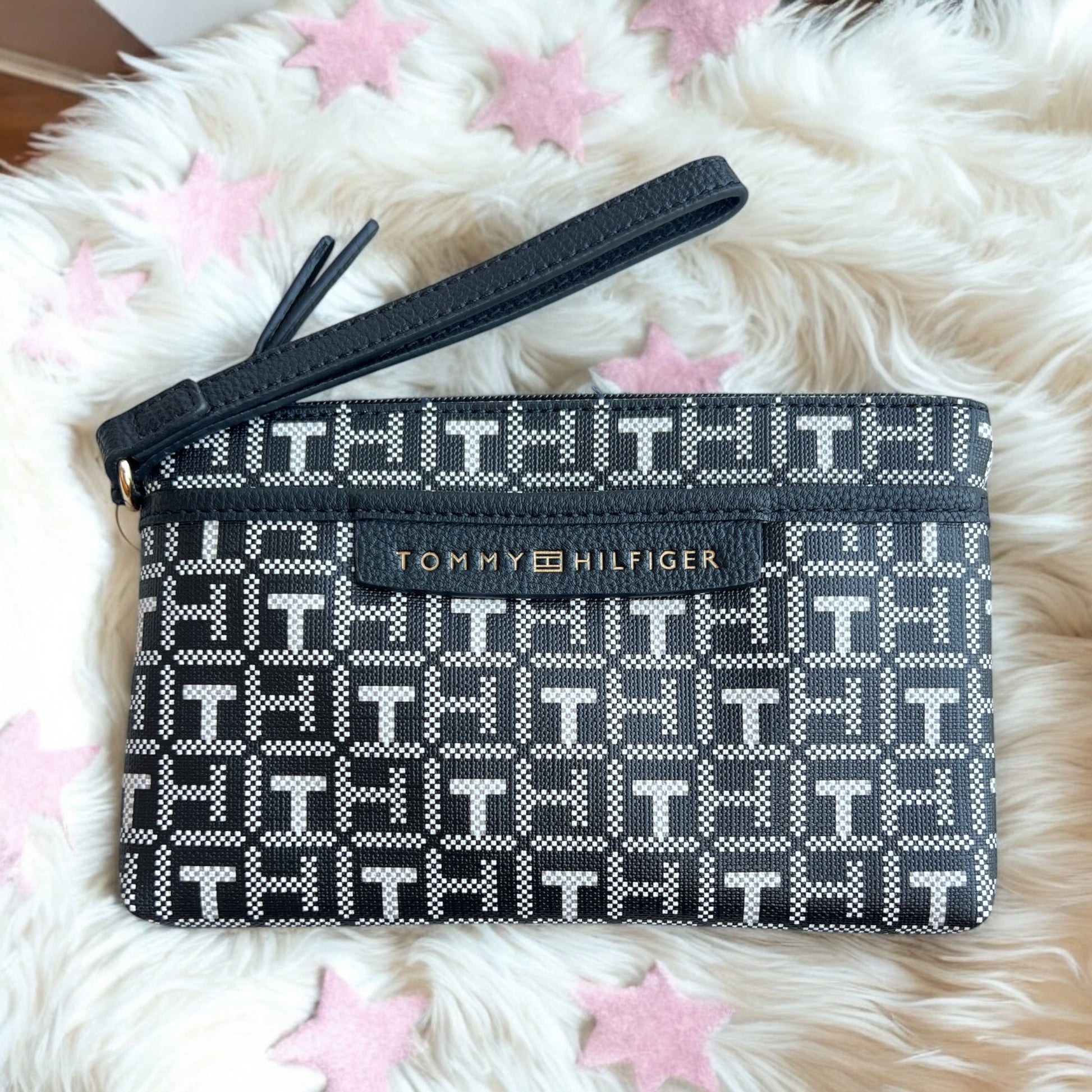 Muñequera Tommy H negra con monogram blanco